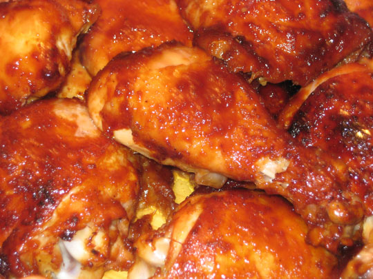 I wanted to continue the Asian theme I had going on with the soy sauce in the chicken glaze, and the ginger and sesame oil in the noodle salad. Balsamic vinegar and olive oil seemed like they would be jarring on the salad in conjunction with the other flavors.
