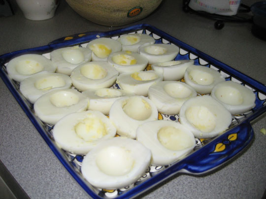 Sounds a delightful meal. I love summer salads, and the daily melon. Regarding the extra eggs for the deviled egg filling: I also cook extra ones for the same reason you do, but I also dice/mash up the one or two egg whites which did not survive in good enough condition to fill. It helps to add bulk to the egg yolks to finish filling up those egg white halves and keeps the mix from being too uniform.