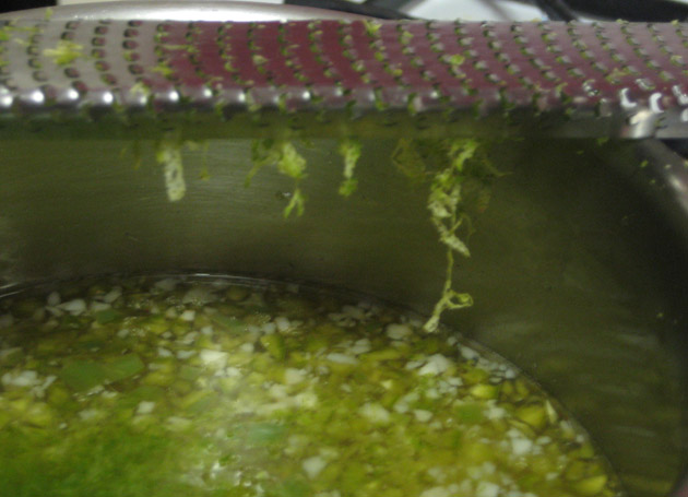 Combine vinegar, sugar and salt in a saucepan and cook over a medium heat until the sugar dissolves. Add the garlic and jalapeno. Allow to cool and then add the lime juice, lime zest and sesame oil.