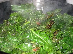 I cooked the kale the way that I cook all dark greens – olive oil, garlic, salt, pepper and a little nutmeg.