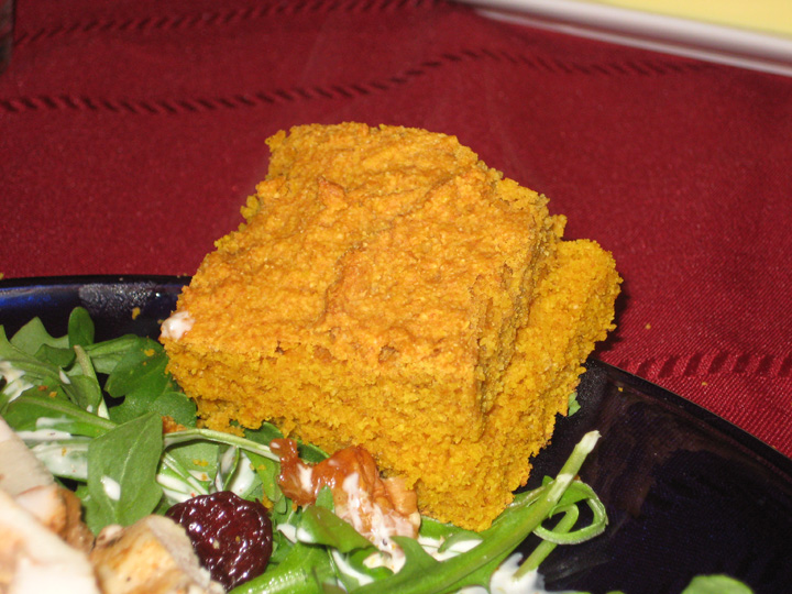 Pumpkin (well winter squash) and cornmeal are probably two of my favorite things, so finding a recipe that credibly combined the two of them was wildly exciting.  And, the recipe lived up to the hype that I’d created in my mind for it, which was also nice.  It also makes a great breakfast the next morning, toasted with a little butter and drowned in honey (or syrup).