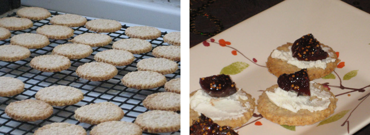 I was pretty much sold on the figs with wine and honey and figured I’d make the oatcakes just because it was the Oscars and why not. And, okay, the figs with the wine-honey syrup are amazing and I am currently eating the leftovers out of the container in the fridge without the intermediary step of putting them on crackers with goat cheese. But, the oatcakes are also pretty amazing, and incredibly easy to make.