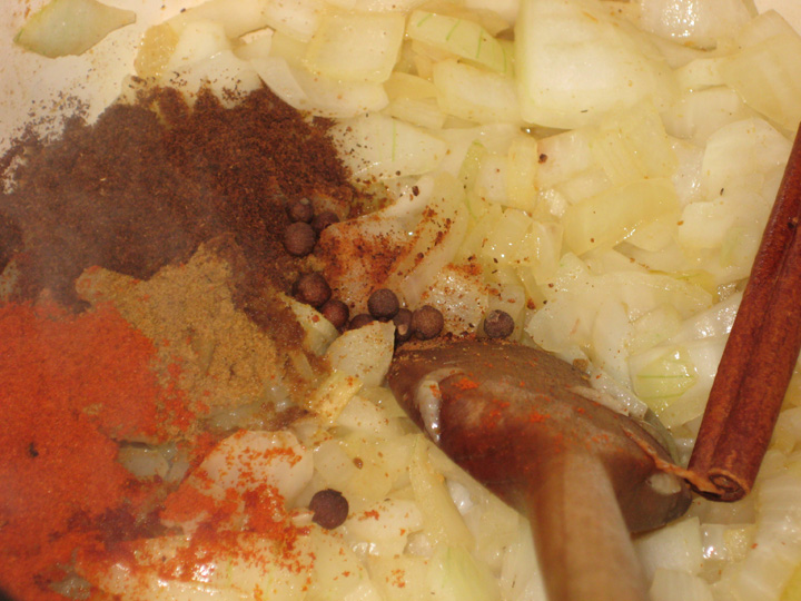 May 20, 2010I ran across a recipe for leek bread pudding last week and was on fire to make it for Dinner. I spent a while trolling for braised chicken recipes on the theory that I didn’t want anything else that would need to bake in the oven at the same time as the bread pudding, and didn’t feel like pan frying chicken again since I did that last week. I wound up with a recipe that didn’t go with bread pudding at all so I nixed the leek bread pudding for Dinner, and made it for us on Tuesday night (verdict – disappointing, don’t need to make it again). What sold me on the Braised Chicken in Aromatic Tomato Sauce was one of the reviews which described the ingredient list as ‘reading like the contents of a medieval lord’s pantry’. Even as I nodded in agreement at the cinnamon, nutmeg, cumin and allspice, I thought well except for those pesky new world tomatoes*. Read the rest of this entry ?