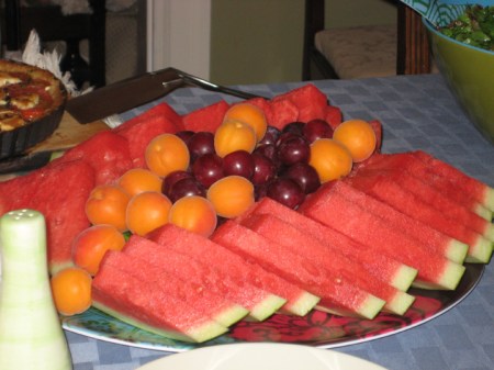 It’s possible I went slightly overboard and served too much food – although I tend to think you can never over estimate how much food will disappear at Dinner. In my defense, the tart was divided into 10 pieces (and that was an exercise in geometry – the only thing that stopped me pulling out a protractor to measure a precise 36 angle was the fact that it’s been a long time since I was in high school and I no longer own a protractor), and the corn soup is light, and everything else makes for useful leftovers. Although, as it turned out the only thing I really had leftover was hard boiled eggs, and I’m not worried about those lingering too long in my fridge (see above comment about Dinner and the perils of over estimation).