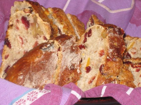 I stood at the bread stand and held a piece of Orange Toasted Walnut & Cranberry bread in one hand, and a piece of Pumpkin Cranberry Date & Pecan bread in the other hand and dithered over which one to buy. I (eventually) opted for the orange bread, but there’s a distinct likelihood that the pumpkin bread will be making an appearance at my table in the very near future.