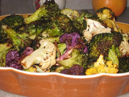 Mix of broccoli & cauliflower (when available I always get the pretty colored cauliflower for it’s aesthetic appeal) – use slightly more than you think people will eat because it shrinks as it roasts and people always go back for seconds.