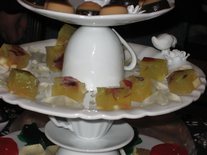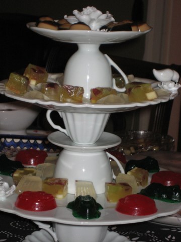 Instead my roommate took classic cocktails and turned them into jello shots. Then, she further glammed them up by chilling them in chocolate molds and serving them on a tiered cake stand. These are quite possibly the classiest jello shots of all time.