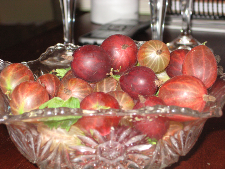 Somehow from what I’d read I assumed they’d be in need of a shave before you could eat them, and so tart they’d turn your mouth inside out. Maybe these are a different variety, but the ones I bought look like those tiny spherical jellyfish you get in tidal pools. And, they taste . . . . tartly globular. They’re not sweet like a blueberry, but they’re not as tart as I’d been expecting either (I was anticipating something in the range of rhubarb). They kind of burst in your mouth like biting into a wee fruity water balloon. Mostly I bought them because I think they’re neat looking, but I am enjoying eating them.