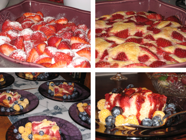 Strawberry Summer Cake (with Rhubarb-Strawberry Sauce & Berries)