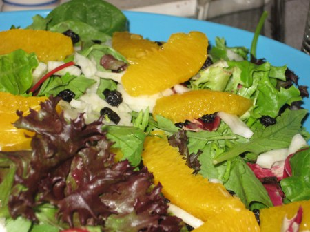 Salad (w/ thinly sliced fennel, orange segments & dried blueberries)