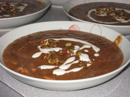 Pumpkin Black Bean Soup w/ Candied Pumpkin Seeds