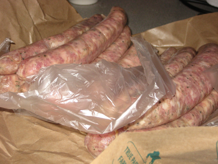 Bring a pot of water to a boil and simmer sausages for 7 minutes to remove some of the fat (this step is optional). Pat dry.