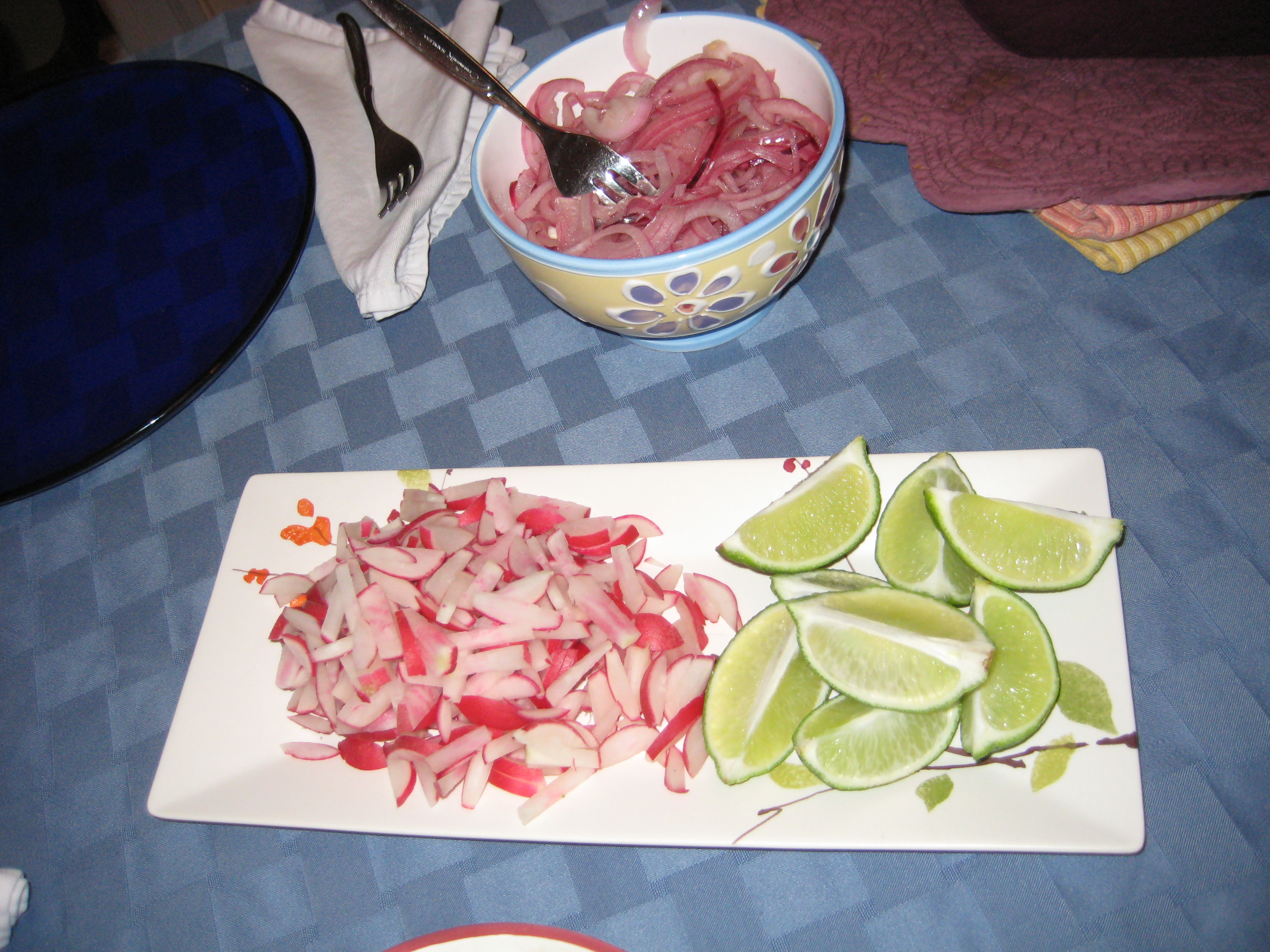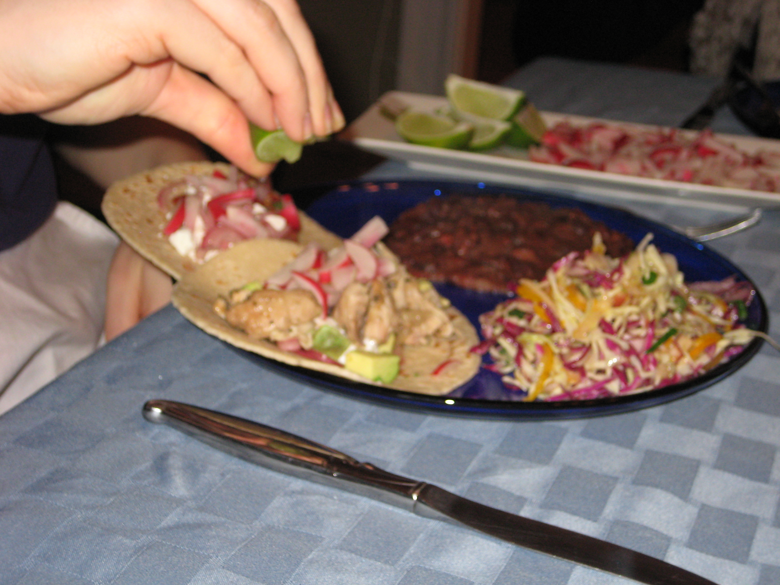 1. […] fish tacos, mango slaw, pickled onions, black beans, grilled […]