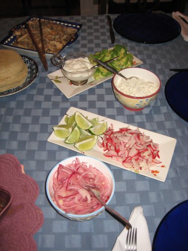 I like Baja style tacos so much that not only did a California style taco joint in Brookline make our standard restaurant rotation, when we haven’t managed to eat there in a while I will actually make a version of that style of taco for dinner. The degrees of separation between what I serve and authentic Mexican food are probably a little embarrassing to count – Mexican street food as interpreted by California cuisine, served to Northeasterners, recreated by someone who’s never been closer to Mexico than San Francisco (okay, my parents took me with them on a trip to the Southwest when I was nine months old, but I wasn’t really eating tacos at that point in my life). That being said, I like my new version of tacos as much as I liked the cafeteria taco I ate as a child, and that’s saying something.