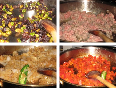 The last time I tried to make this for Dinner it turned out more like soup than anything you could put on a sandwich. When you cut the recipe in half (so ½ lb of ground chicken) it’s a 45 minute meal, and I know this because I make it for my roommate and I all the time. When you multiply it up to 2 lb of ground chicken, it takes a little longer. I found that you really needed to sauté things in batches to not end up with soup. Accordingly, I cooked the chicken in two batches, and then I sautéed the onions, and then I sautéed the red peppers so that the pan didn’t get over crowded and each ingredient had a chance to brown and soften without steaming. Conveniently that turned out to be about the amount of time the sauce needed to reduce to the appropriate thickness.