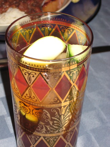 Garnish of cucumber spear and green apple