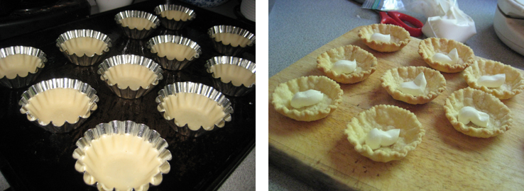 Blind bake either 1 large tart shell, or many mini tartlet shells until golden brown and cooked. Allow to cool before proceeding.