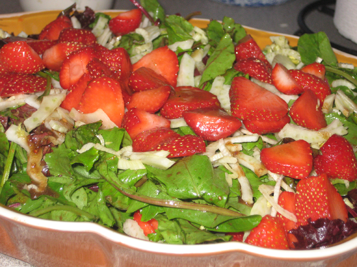 I was planning on using pea tendrils in this salad because I’d seen them the other week at Wilson Farms, but either they were out when I was there on Saturday or I missed my narrow seasonal window for pea tendrils. I settled for tender young beet greens instead.