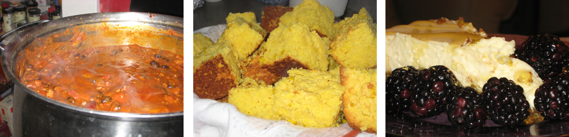 This was the meal where I had an email exchange where the Birthday girl picked Pumpkin Chili and then asked if it would be ridiculous to have that with corn pudding. My answer was that theoretically no, but in practice it seemed like the two would be hard to eat together. We compromised on what turned out to be essentially the cornbread version of corn pudding.