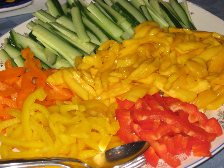 Julienned – cucumbers, sweet peppers, mango