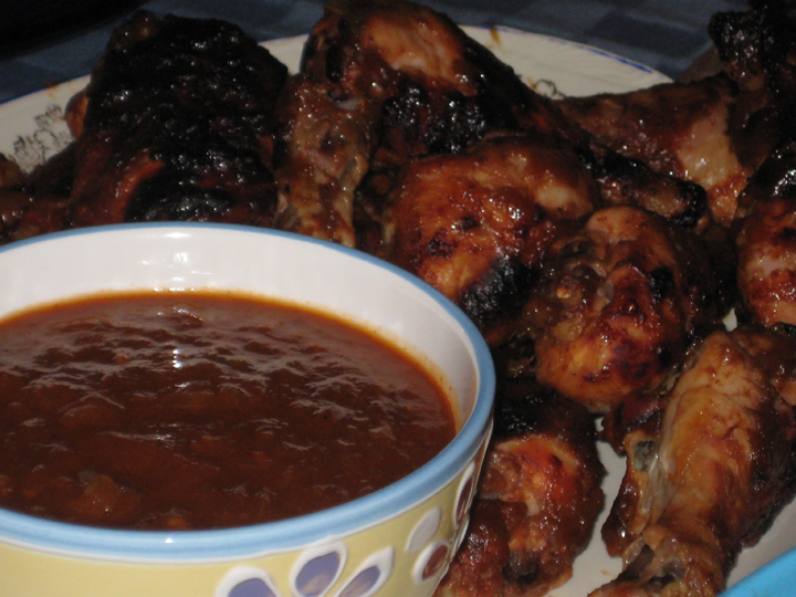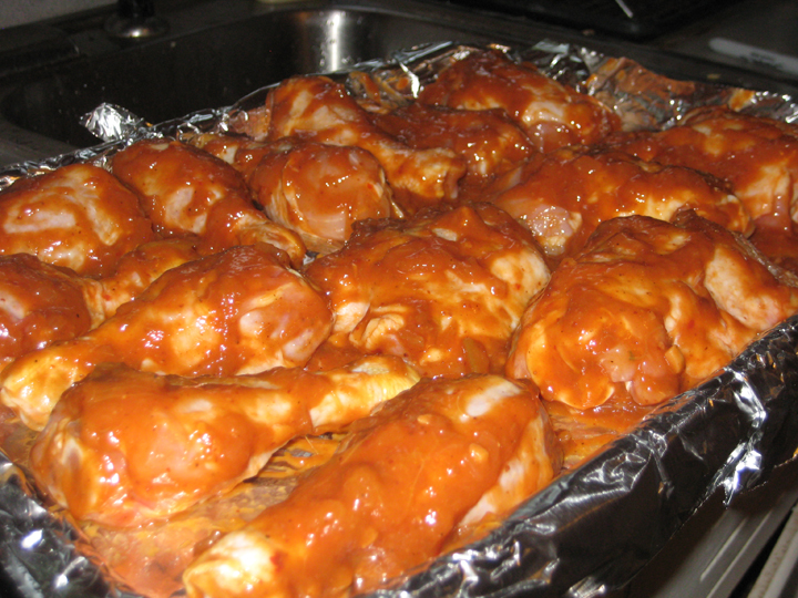Slather the chicken with half the rhubarb bbq sauce. Place on a lined baking sheet and roast in a 400 oven for about 45-50 minutes, or until chicken is cooked through and sauce is caramelized.