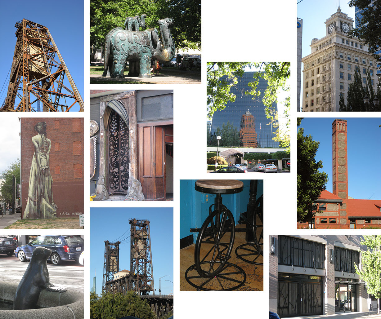We also spent a lot of time just wandering around a variety of Portland neighborhoods – the Pearl Arts District, along the waterfront, through a number of residential areas. Downtown Portland is still very industrial, and wears it with pride. There’s a lot of street art on display – from murals on the sides of buildings, to sculptures in parks, to doors that look like the entrance to a fairy kingdom. We have a friend who is a graphic designer, and I worried that if we let her roam around Portland we’d never be able to pry her lose again.