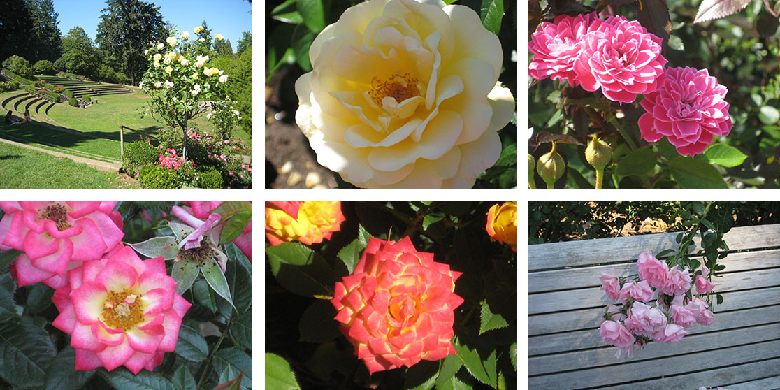 After brunch at Broder the first day we took ourselves off to the International Rose Test Garden. And, let me clarify here, when I first looked at the words Rose Test Garden I envisioned something like a formal English garden with (a few) beds of neatly tended roses. The Rose Test Garden does indeed have beds of neatly tended roses, separated by long grassy alleys. Where it is nothing like what I imagined is in the sheer size and scale of the garden. It is acres of roses in every shape, size, color, and scent you can imagine (and some you can’t – a lot of the roses looked and smelled nothing like a traditional rose). It is gorgeous, overwhelming, and heady with the scent of roses. Needless to say, I took many many pictures .