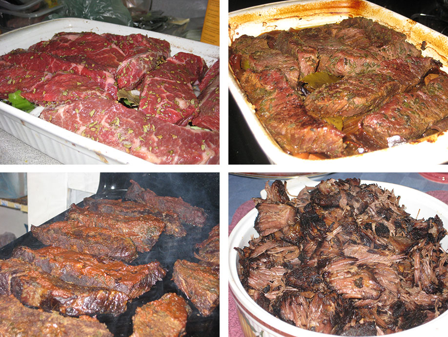 Pour the water over everything, and then tightly cover the pan with a double layer of foil and braise in the oven for 3 ½ hours, until the meat is very tender.