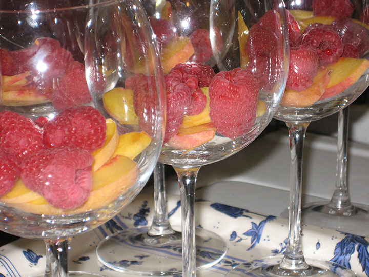 Sliced peaches & raspberries