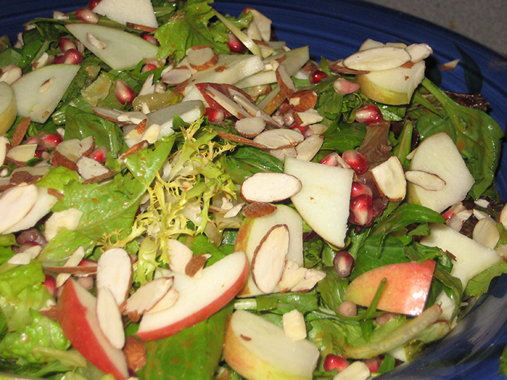 Salad with Apples, Almond, Pomegranates & Pomegranate Vinaigrette